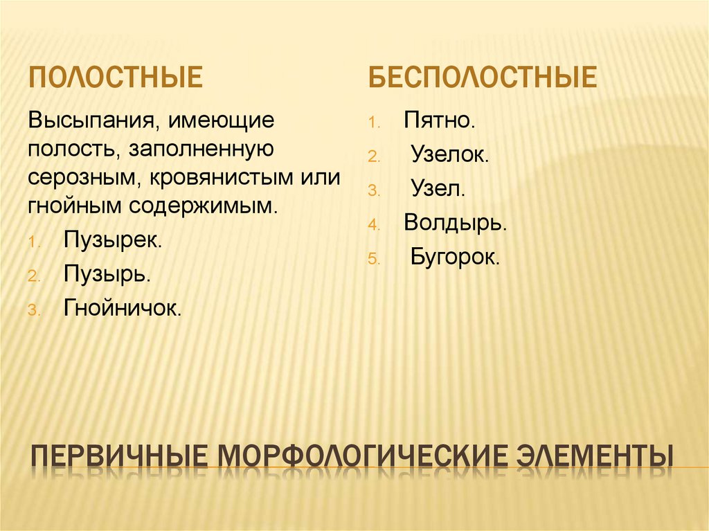 ПЕРВИЧНЫЕ МОРФОЛОГИЧЕСКИЕ ЭЛЕМЕНТЫ