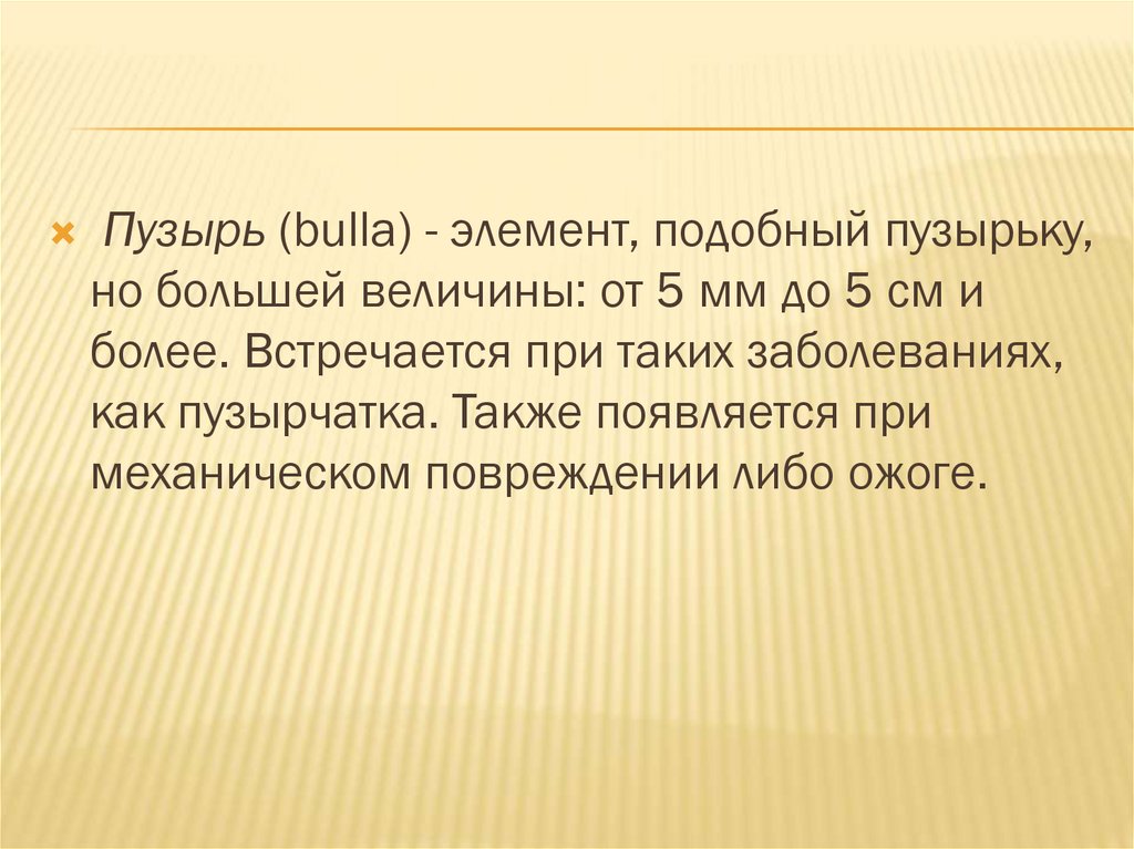 Пузырь (bulla) - элемент, подобный пузырьку,но большей величины: от 5 мм до 5 см и