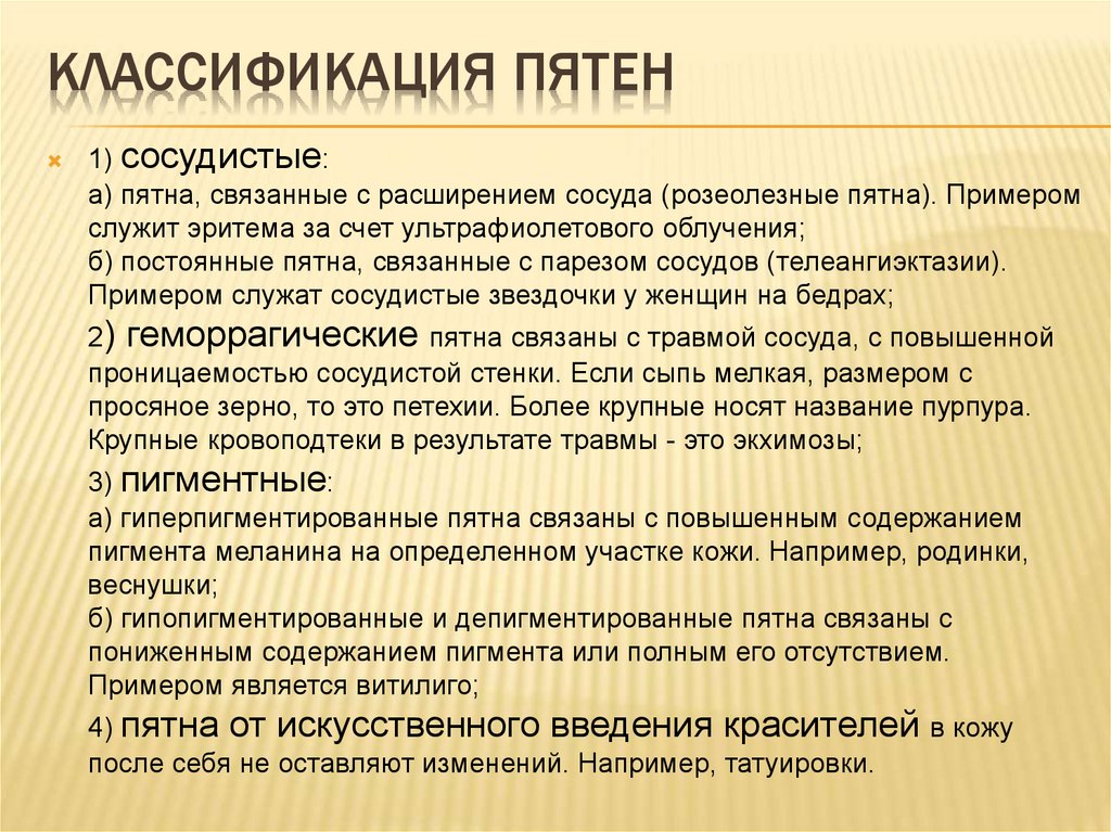 КЛАССИФИКАЦИЯ ПЯТЕН1) сосудистые:
