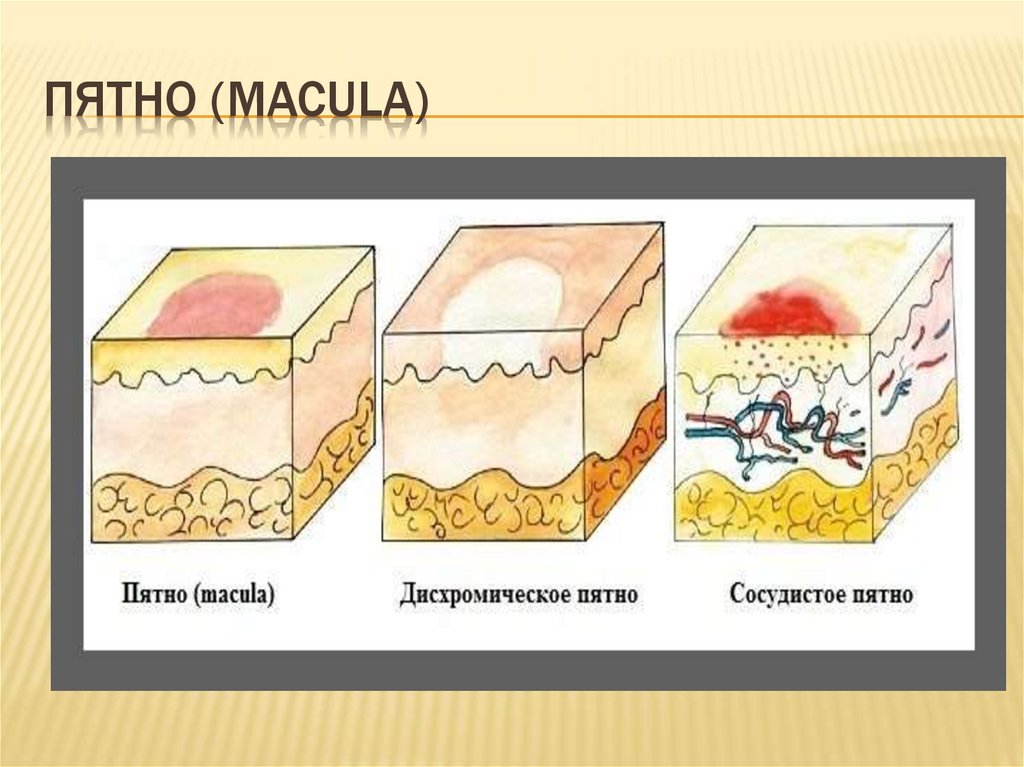 а) пятна, связанные с расширением сосуда (розеолезные пятна). Примером
