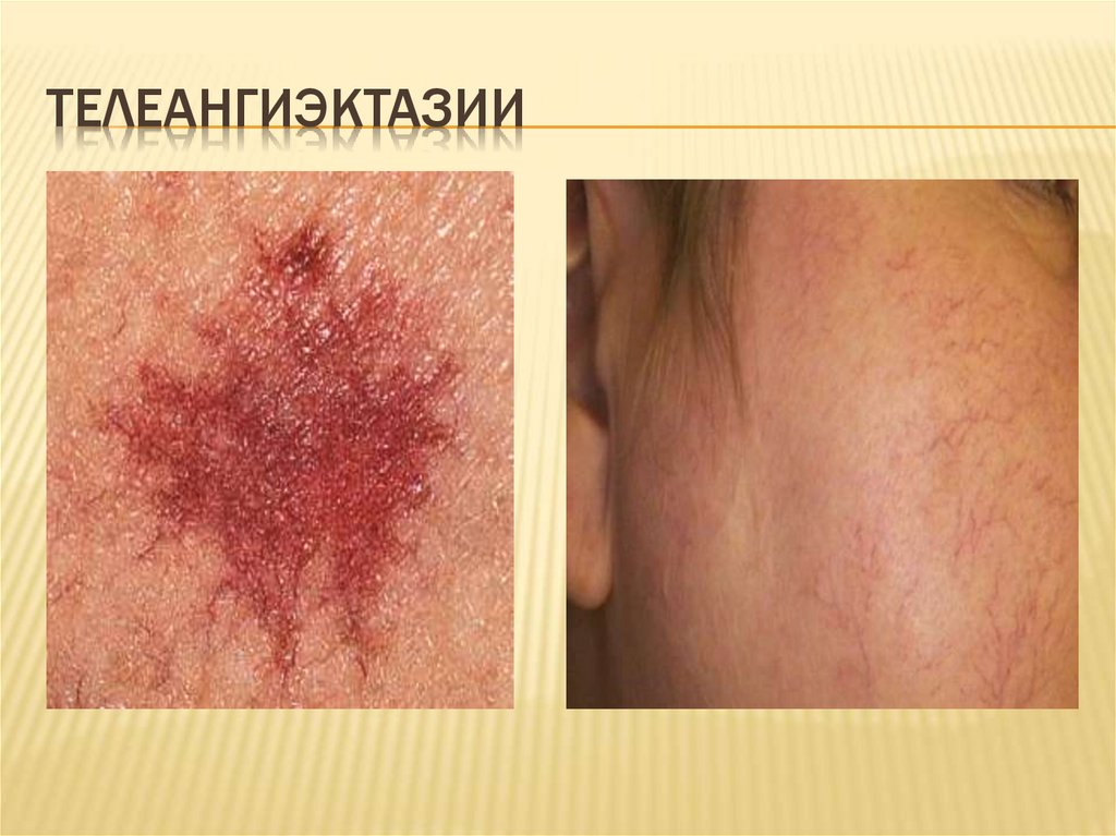 б) постоянные пятна, связанные с парезом сосудов (телеангиэктазии).