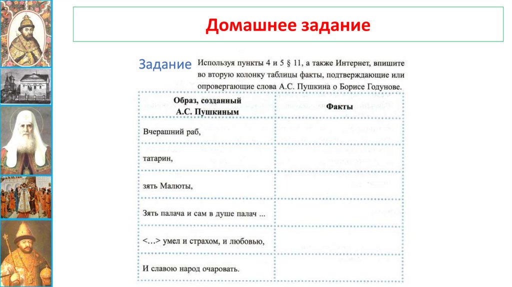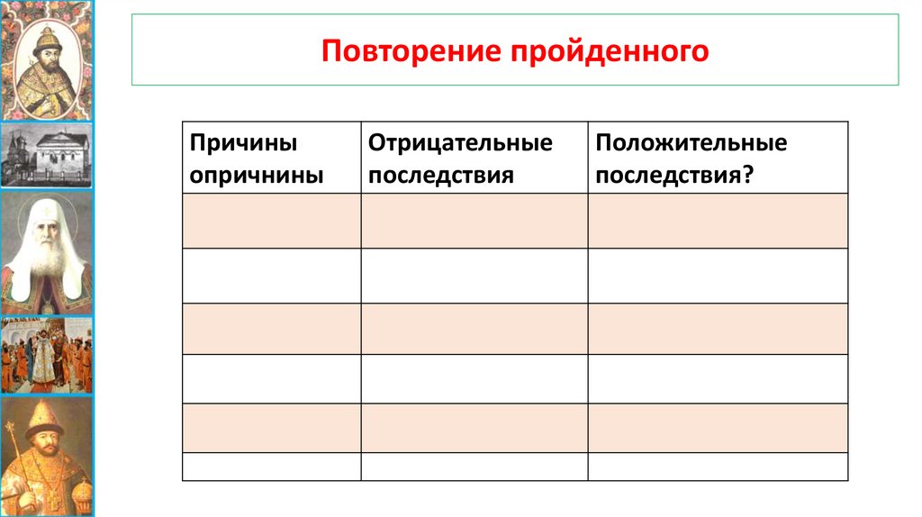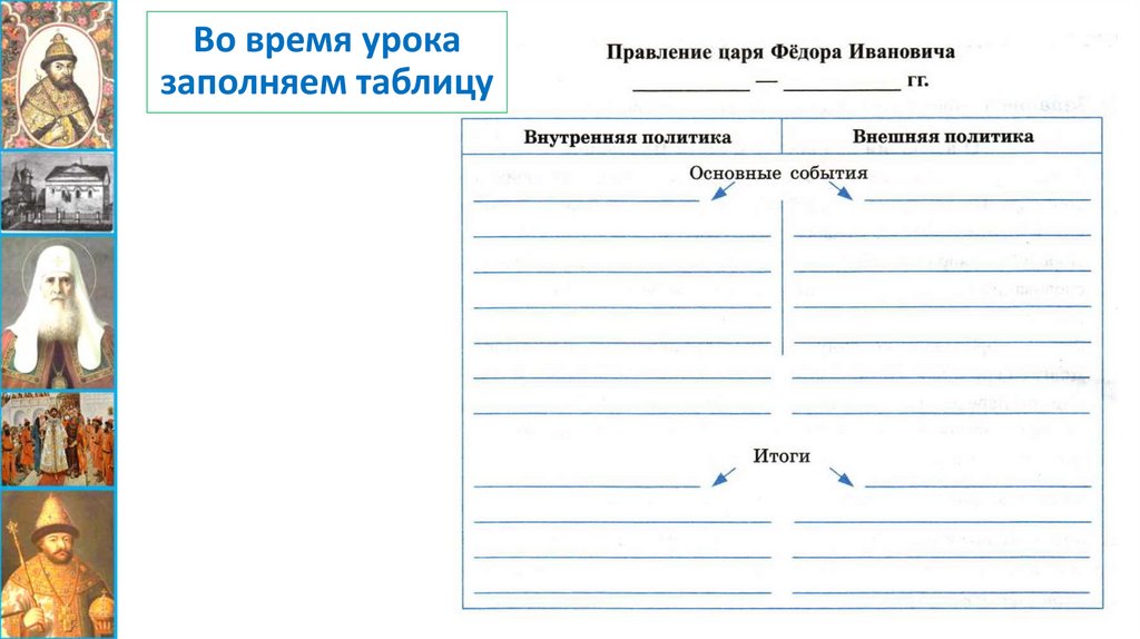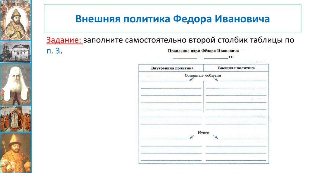 Внешняя политика Федора ИвановичаЗадание: заполните самостоятельно второй столбик таблицы по