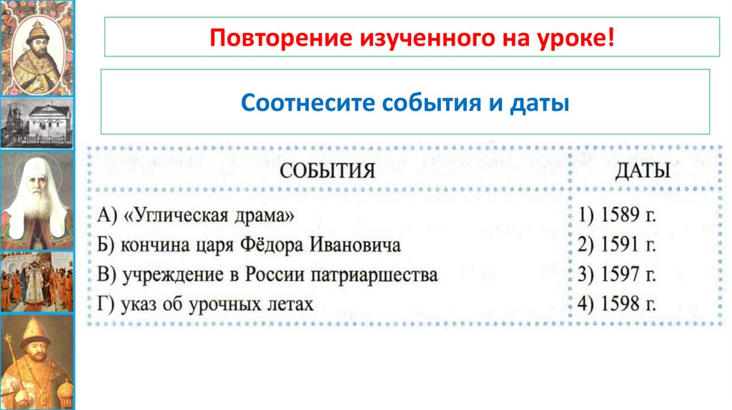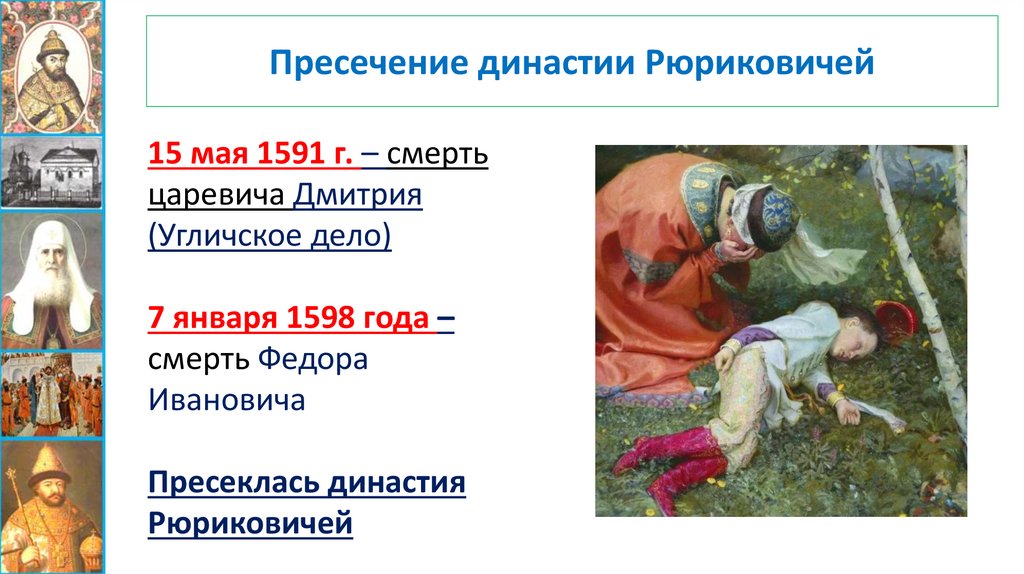 Пресечение династии Рюриковичей15 мая 1591 г. – смерть
