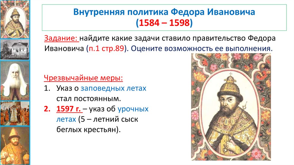 Внутренняя политика Федора Ивановича(1584 – 1598)