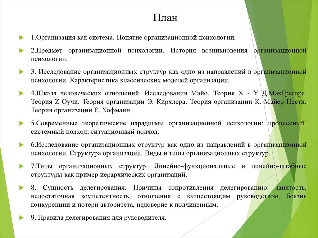 План1.Организация как система. Понятие организационной психологии.