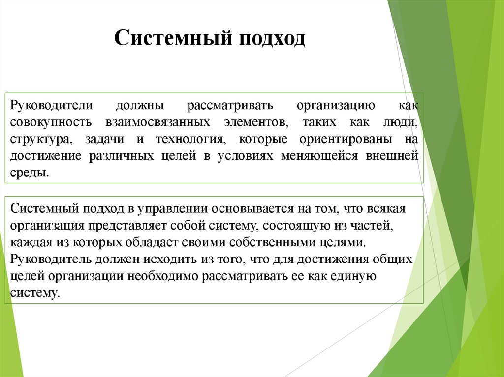 системный подход; ситуационный подход.