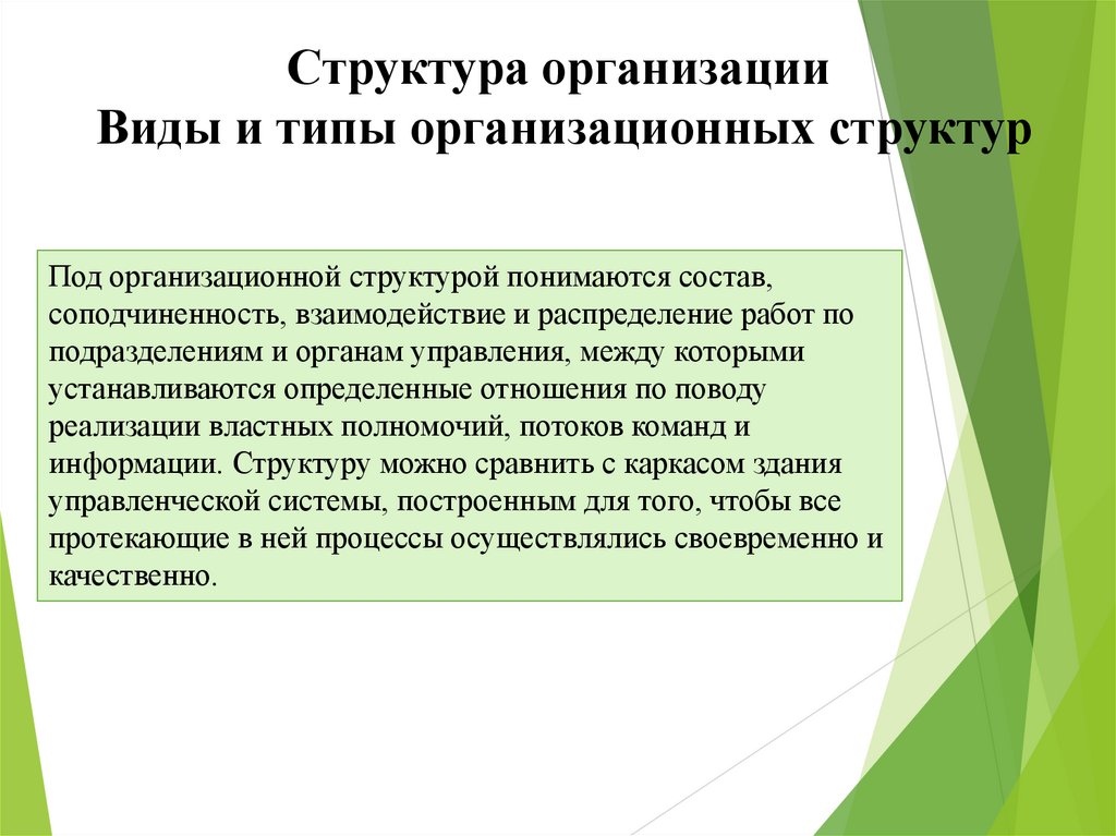 психологии. Структура организации. Виды и типы организационных структур.