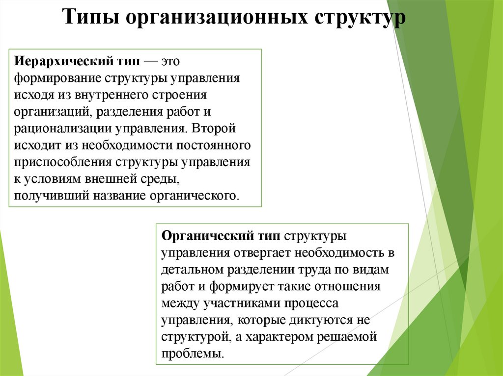 Типы организационных структурИерархический тип — это
