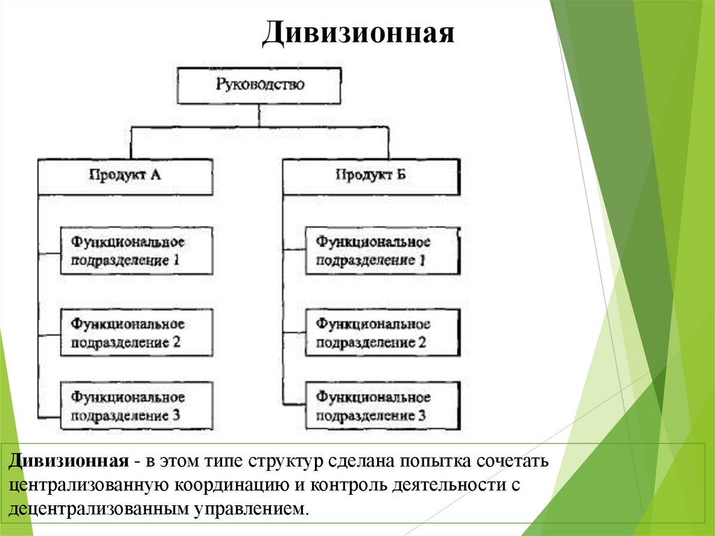 ДивизионнаяДивизионная - в этом типе структур сделана попытка сочетать