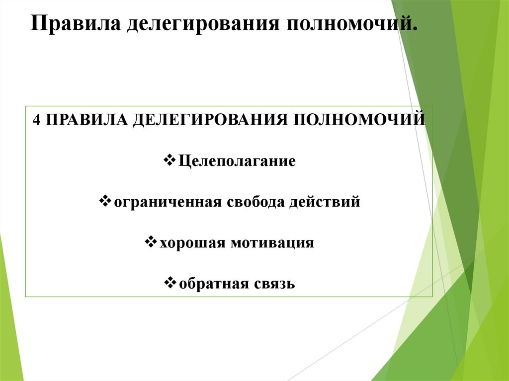 9. Правила делегирования для руководителя.