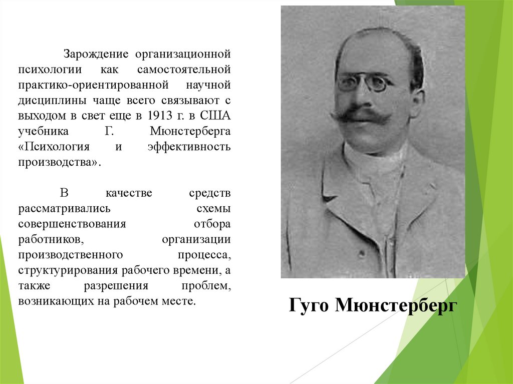 Зарождение организационнойпсихологии как самостоятельной