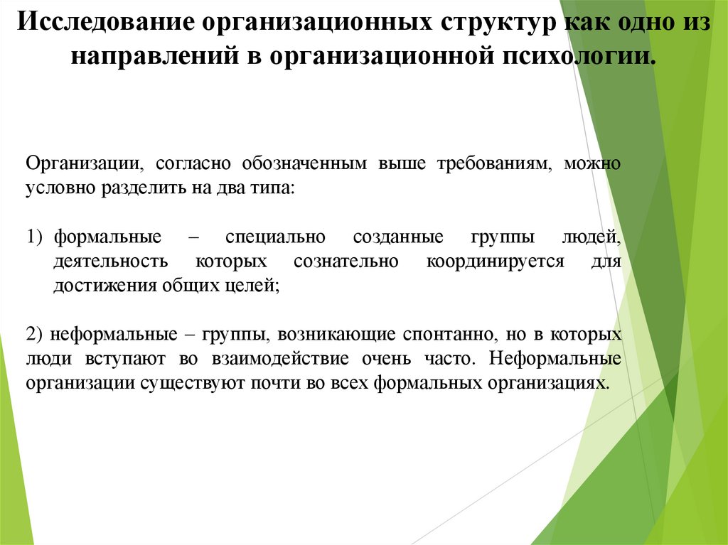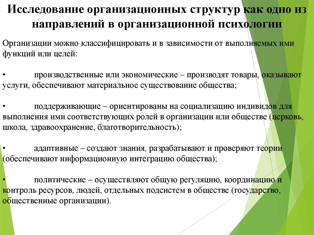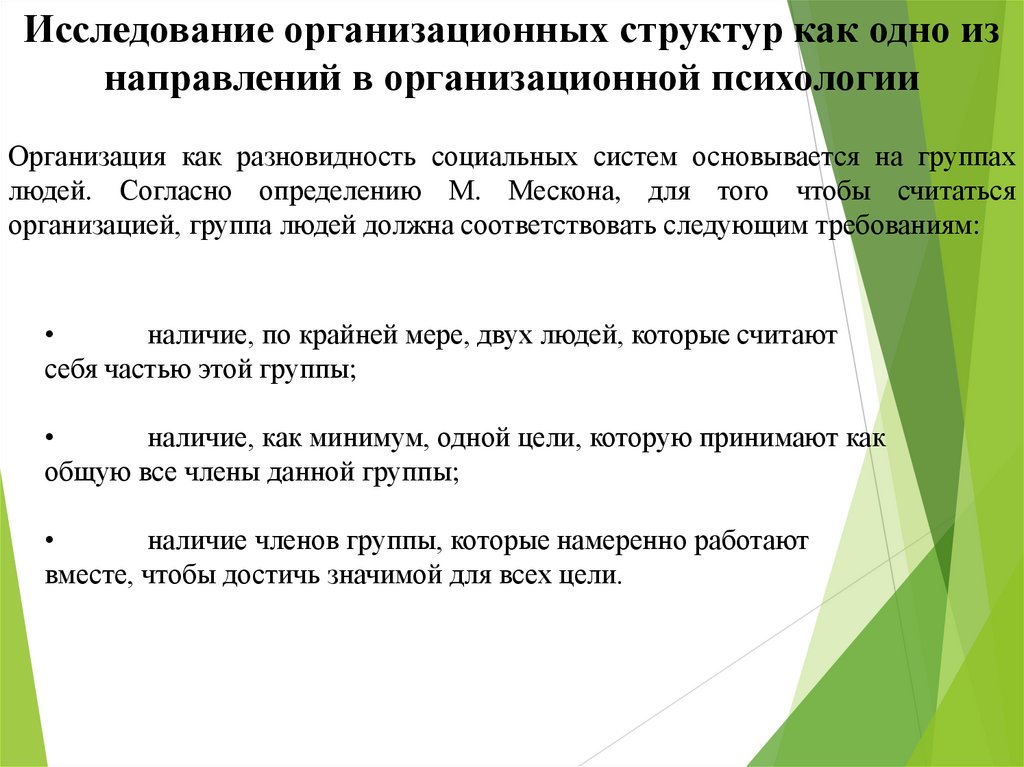 Исследование организационных структур как одно изнаправлений в организационной психологии