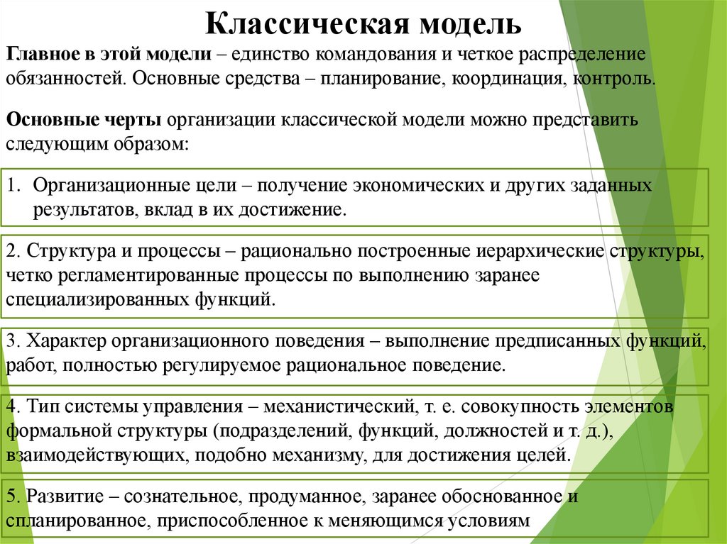 психологии. Характеристика классических моделей организации.