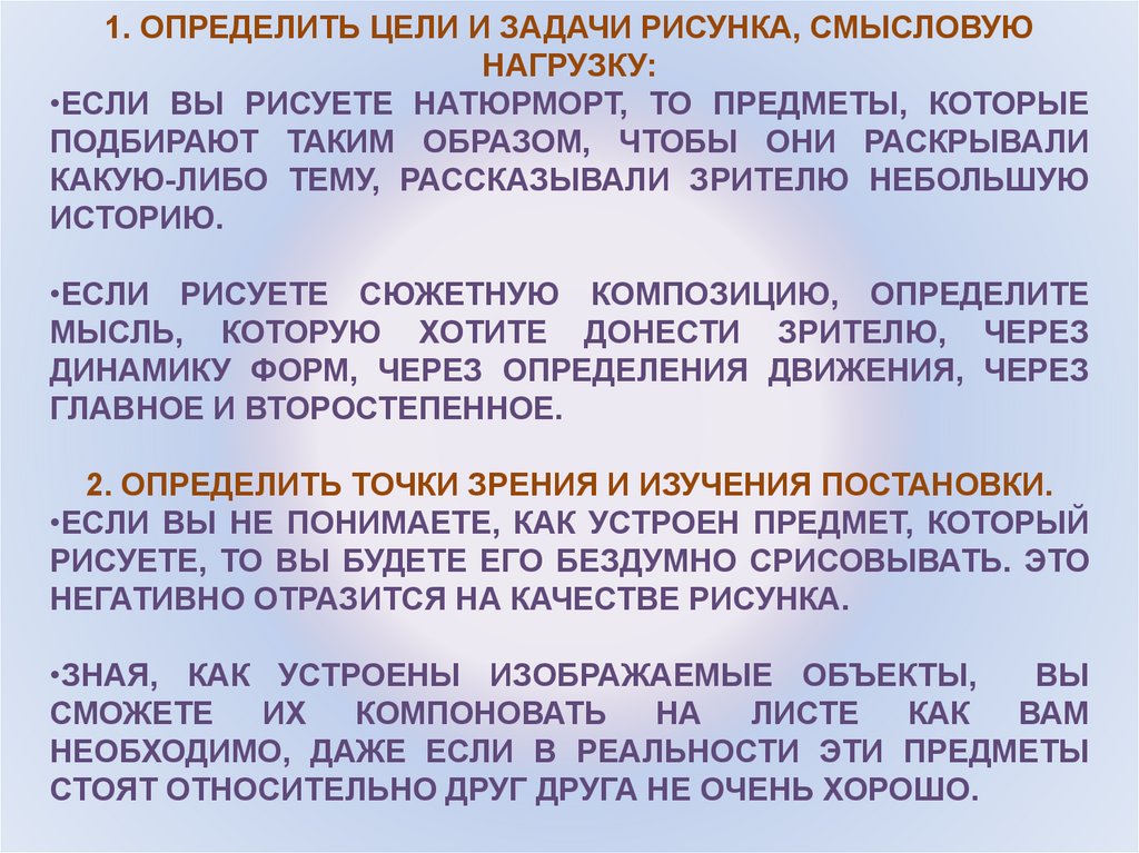 1. ОПРЕДЕЛИТЬ ЦЕЛИ И ЗАДАЧИ РИСУНКА, СМЫСЛОВУЮНАГРУЗКУ: