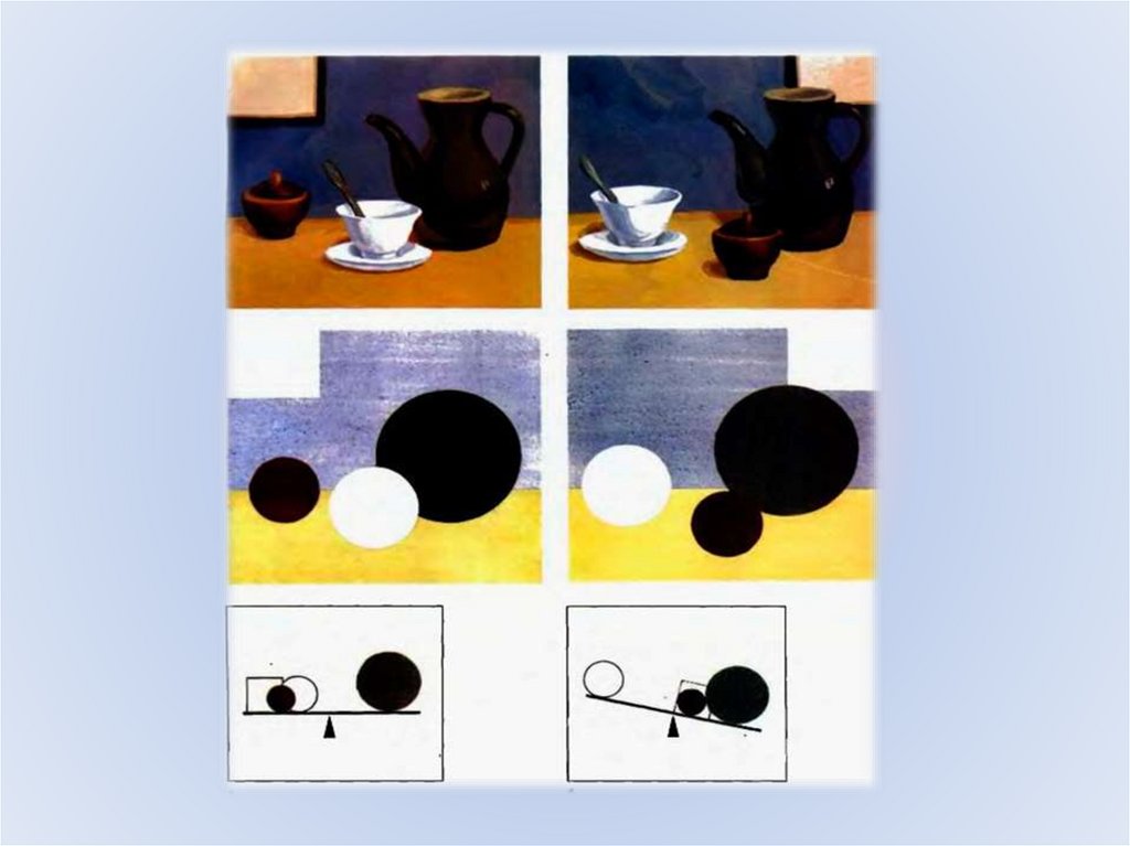 4 НАМЕТИТЬ ПРЕДМЕТЫ НА ПЛОСКОСТИ ЛИСТА И УРАВНОВЕСИТЬ ИХ