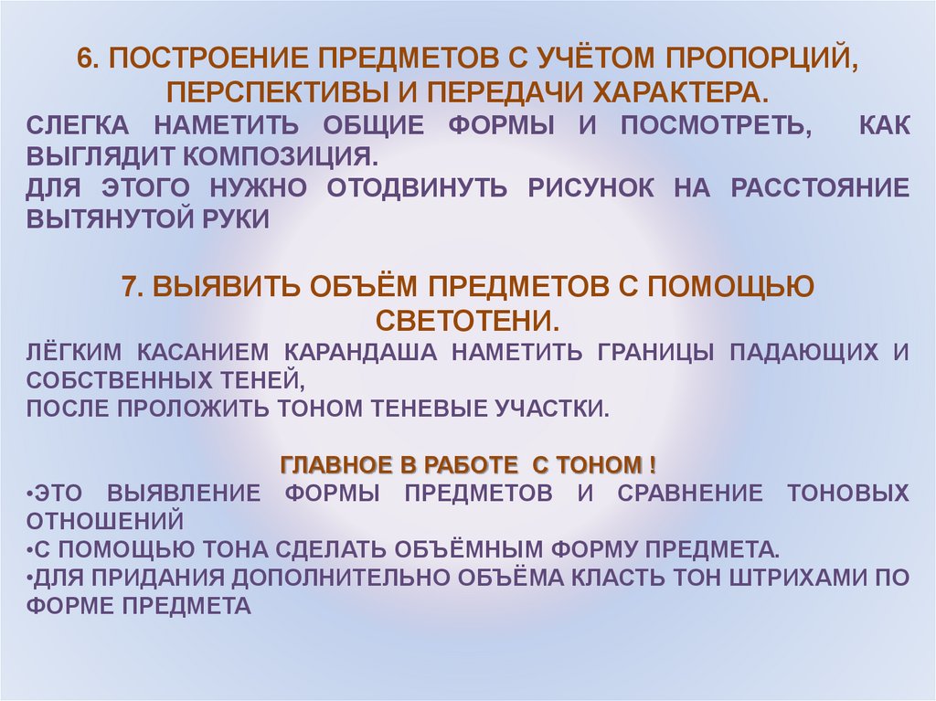 6. ПОСТРОЕНИЕ ПРЕДМЕТОВ С УЧЁТОМ ПРОПОРЦИЙ,ПЕРСПЕКТИВЫ И ПЕРЕДАЧИ ХАРАКТЕРА.