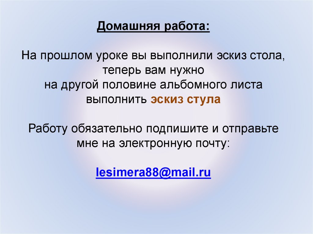 Домашняя работа:На прошлом уроке вы выполнили эскиз стола,