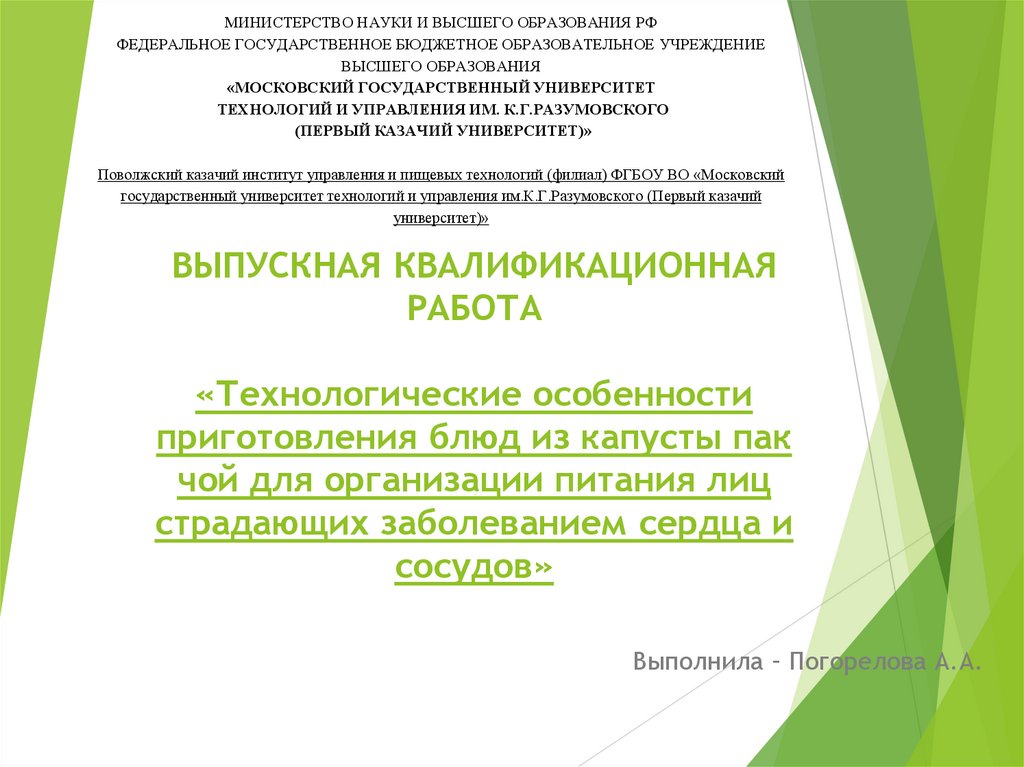 Технологические особенности приготовления блюд из капусты для организации питания лиц страдающих заболеванием сердца и сосудов