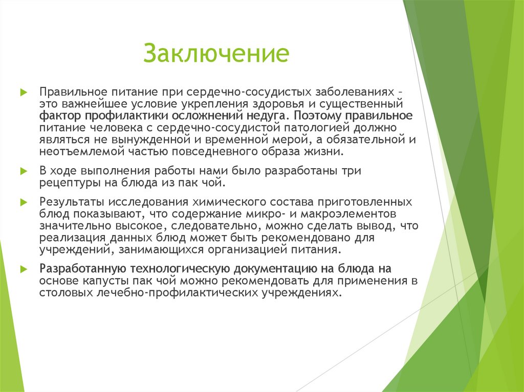 ЗаключениеПравильное питание при сердечно-сосудистых заболеваниях –