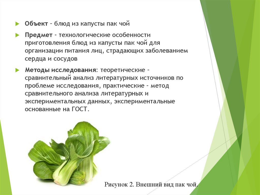 Объект – блюд из капусты пак чойПредмет – технологические особенности