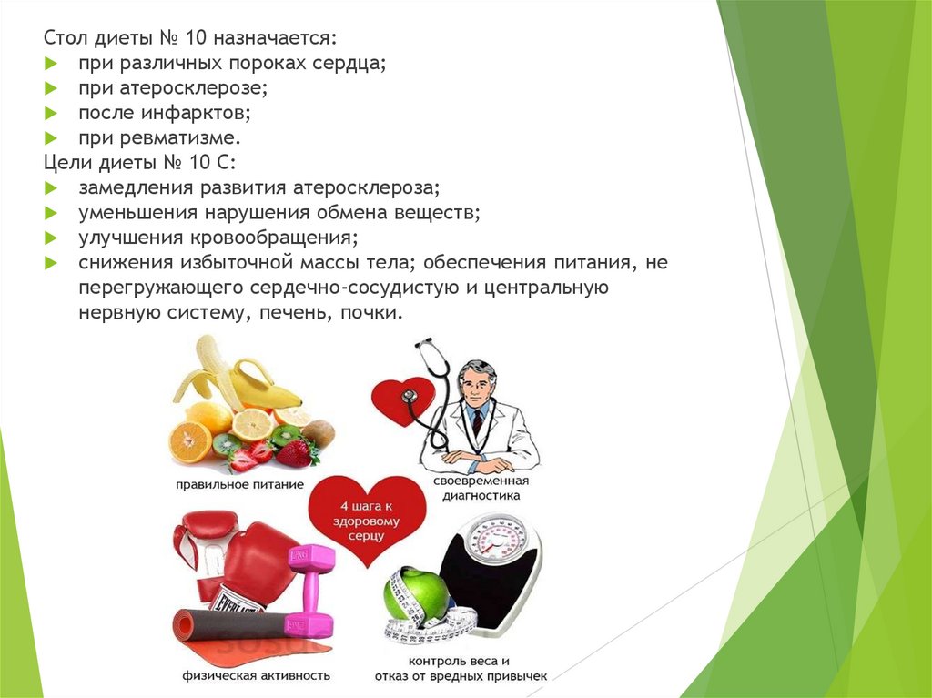 Стол диеты № 10 назначается:при различных пороках сердца;