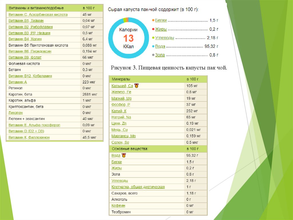 Рисунок 3. Пищевая ценность капусты пак чой.7.