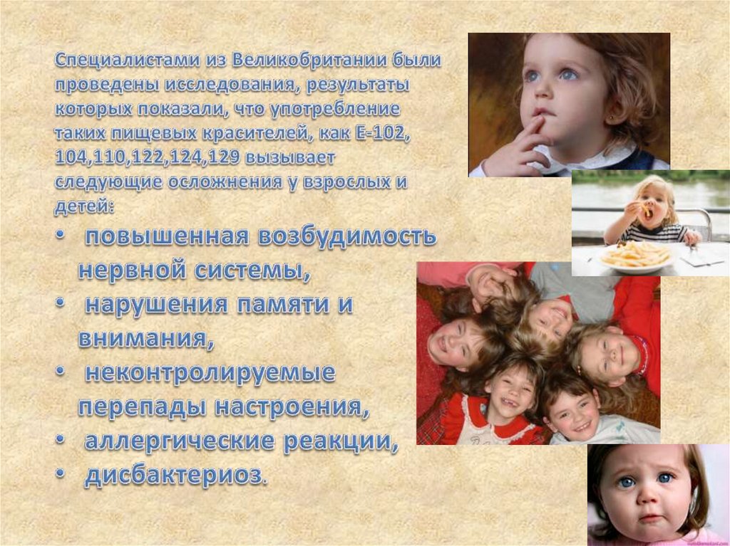 Влияние пищевых красителей на живой организм