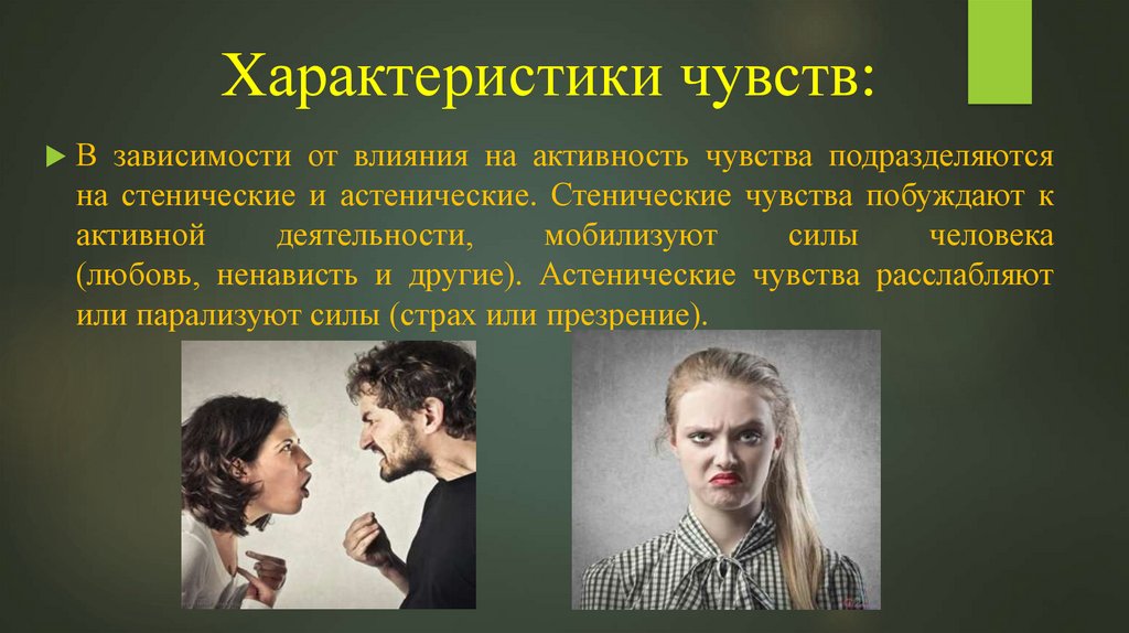 (любовь, ненависть и другие). Астенические чувства расслабляют