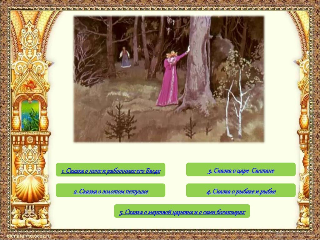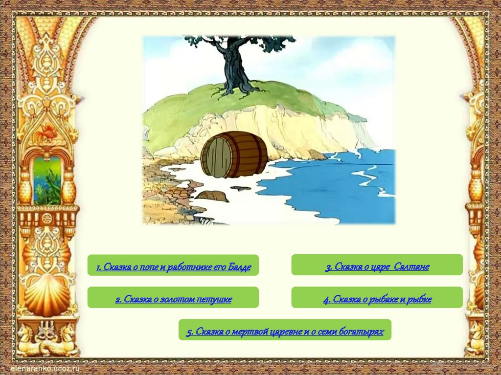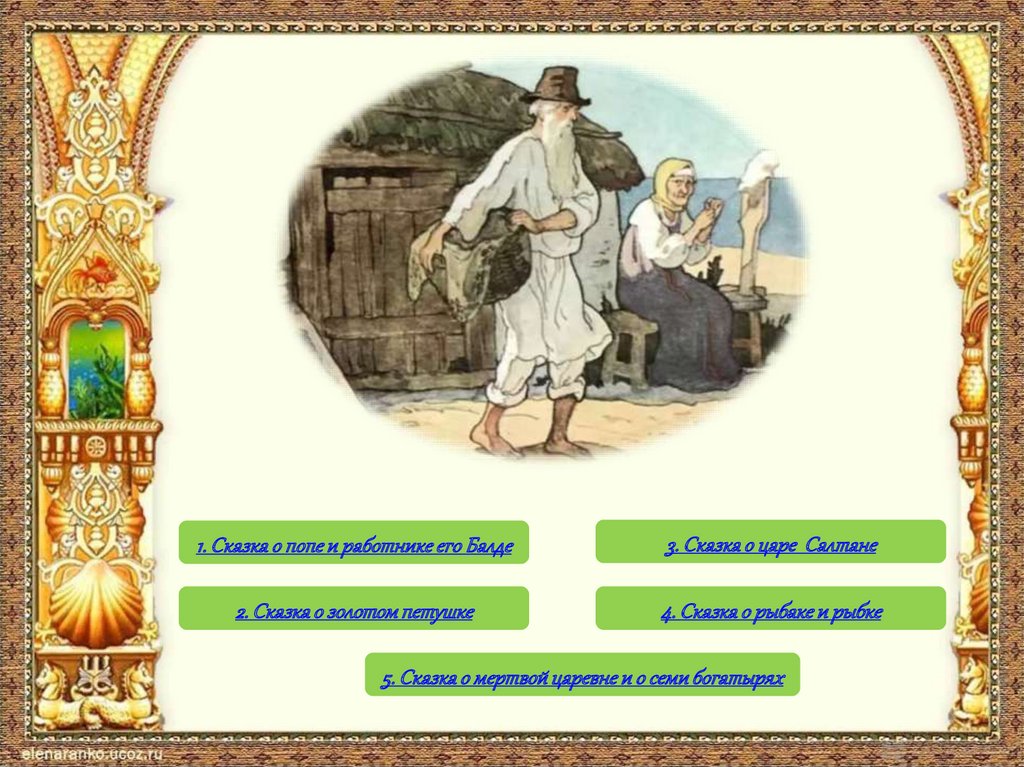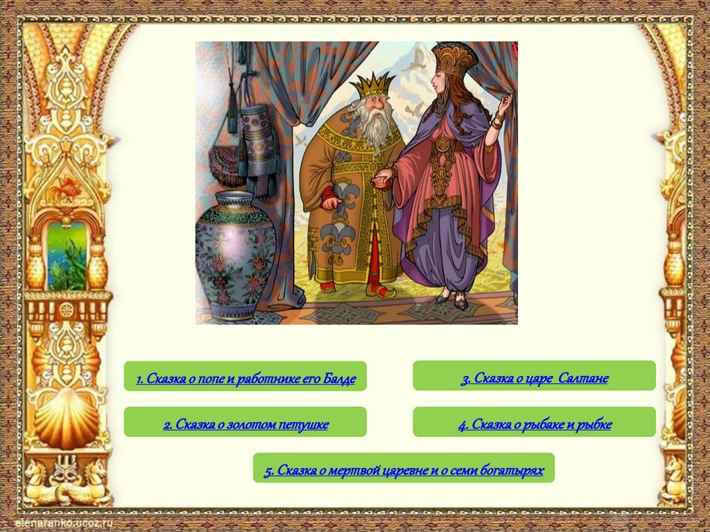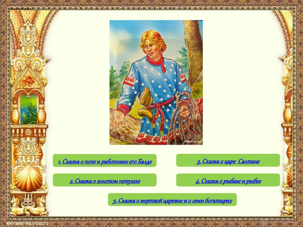 1. Сказка о попе и работнике его Балде3. Сказка о царе Салтане