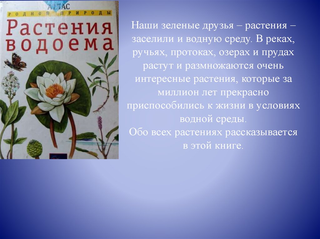 Наши зеленые друзья – растения –заселили и водную среду. В реках,