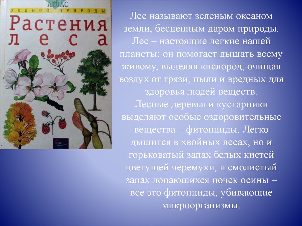 Лес называют зеленым океаномземли, бесценным даром природы.