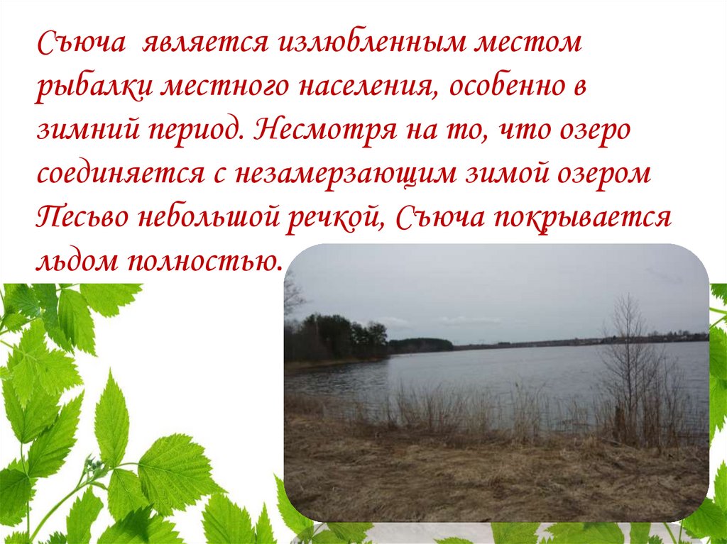 Съюча является излюбленным местомрыбалки местного населения, особенно в