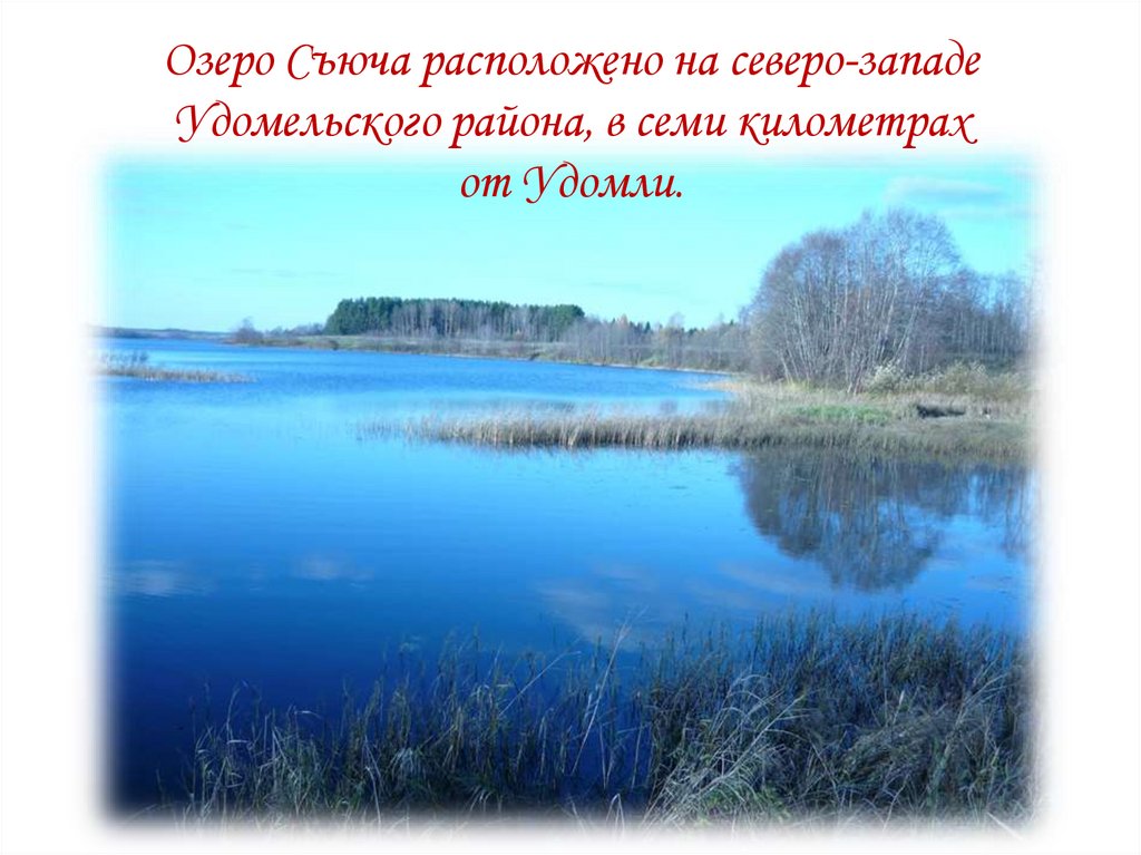 Озеро Съюча расположено на северо-западеУдомельского района, в семи километрах