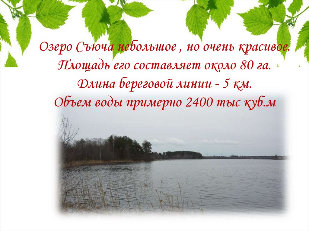 Озеро Съюча небольшое , но очень красивое.Площадь его составляет около 80 га.