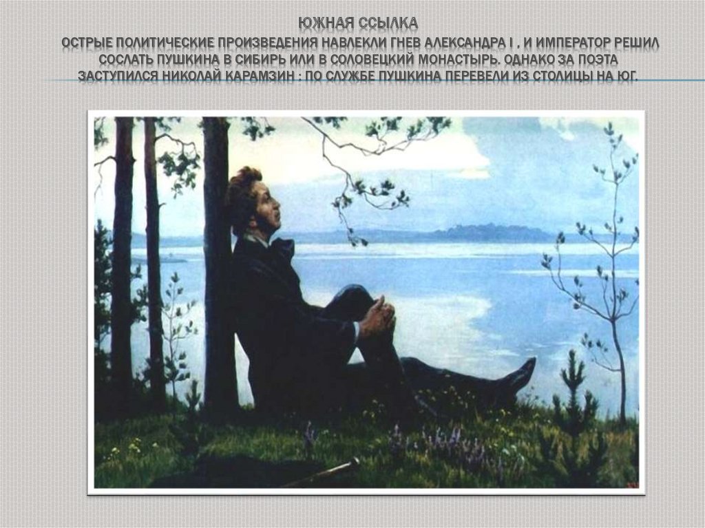 ЮЖНАЯ ССЫЛКАОСТРЫЕ ПОЛИТИЧЕСКИЕ ПРОИЗВЕДЕНИЯ НАВЛЕКЛИ ГНЕВ АЛЕКСАНДРА I , И ИМПЕРАТОР РЕШИЛ