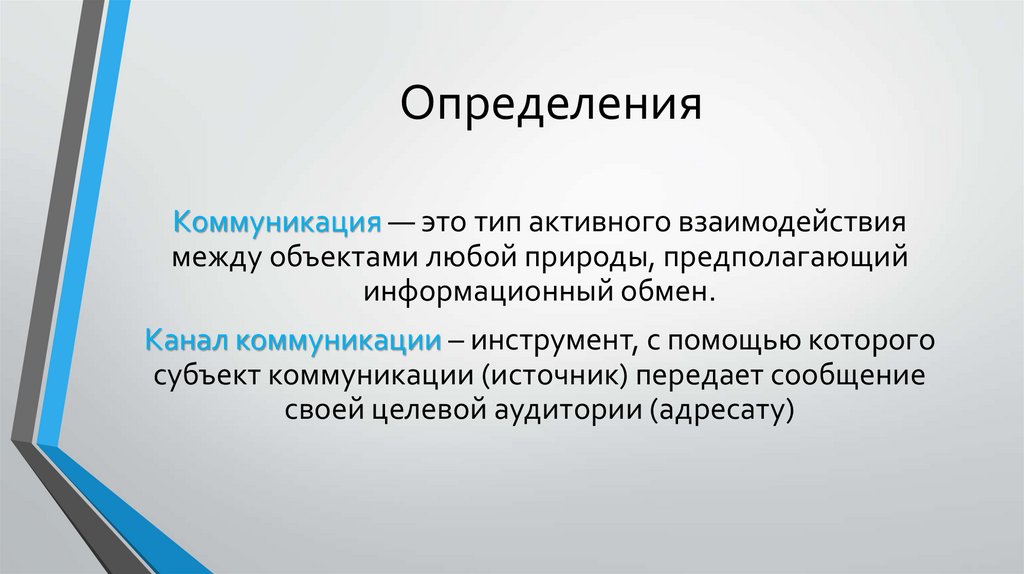 ОпределенияКоммуникация — это тип активного взаимодействия