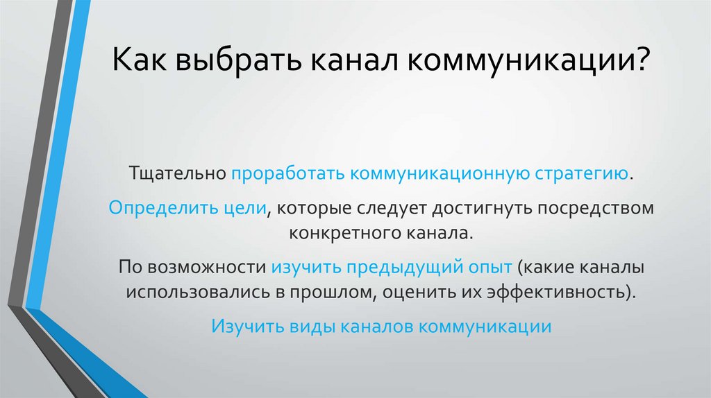 Как выбрать канал коммуникации?Тщательно проработать коммуникационную стратегию.