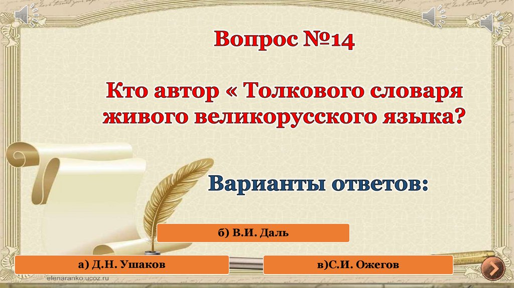 б) В.И. Дальа) Д.Н. Ушаков