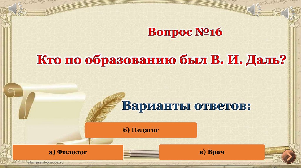 б) Педагога) Филолог