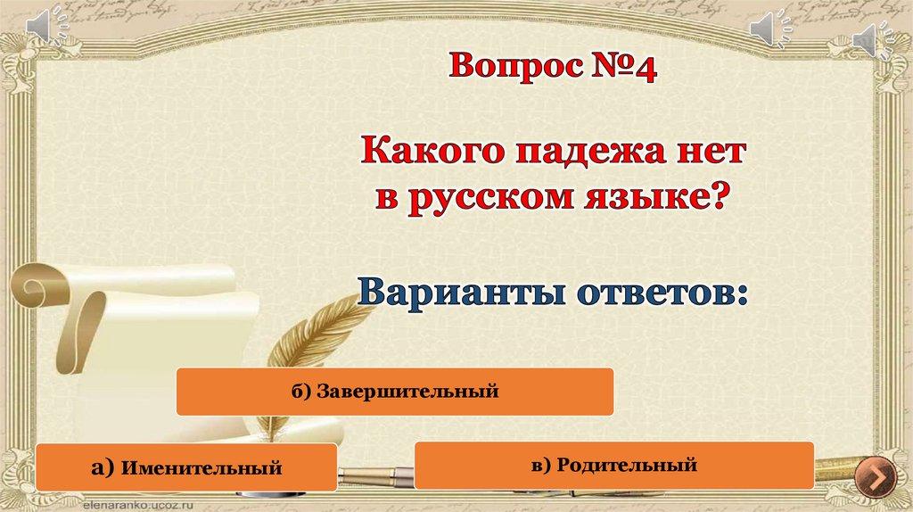 б) Завершительныйа) Именительный