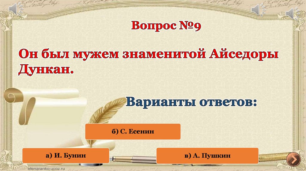 б) С. Есенина) И. Бунин