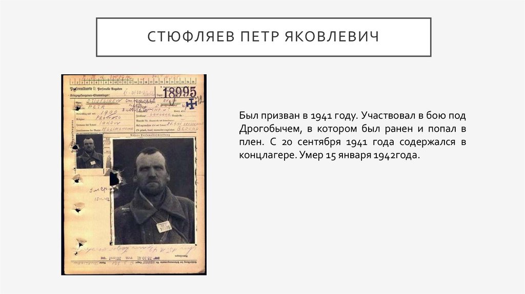 концлагере. Умер 15 января 1942года.