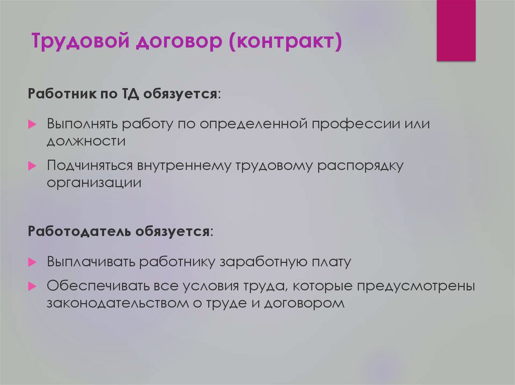Трудовой договор (контракт)Работник по ТД обязуется: