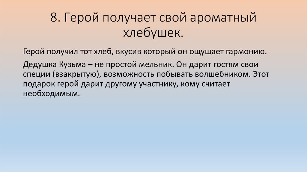 8. Герой получает свой ароматныйхлебушек.