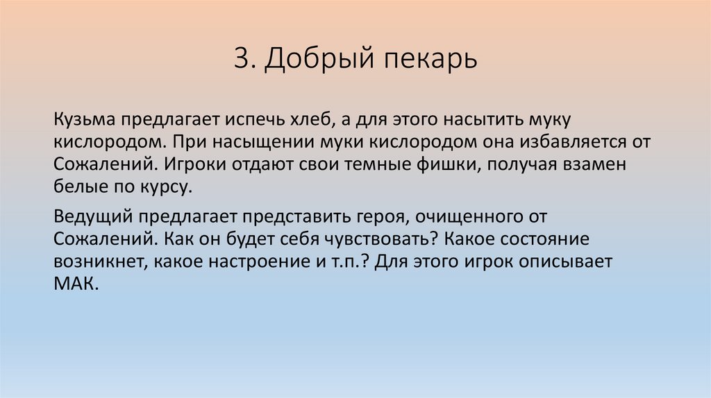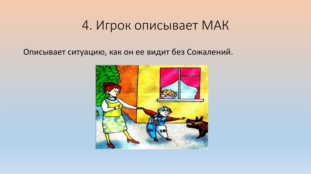 4. Игрок описывает МАКОписывает ситуацию, как он ее видит без Сожалений.