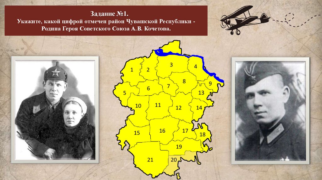 Задание №1.Укажите, какой цифрой отмечен район Чувашской Республики Родина Героя Советского Союза А.В. Кочетова.