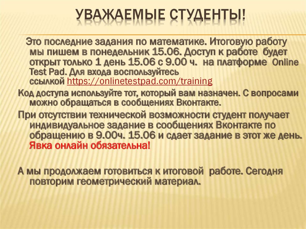 ссылкой https://onlinetestpad.com/training