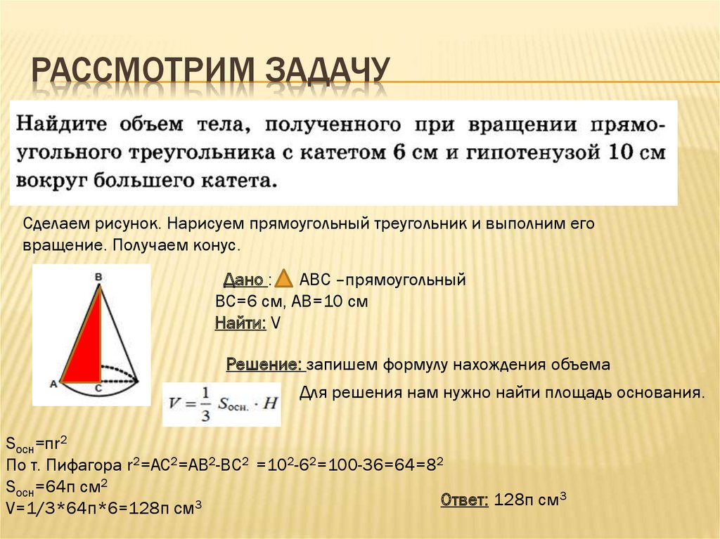 вращение. Получаем конус.