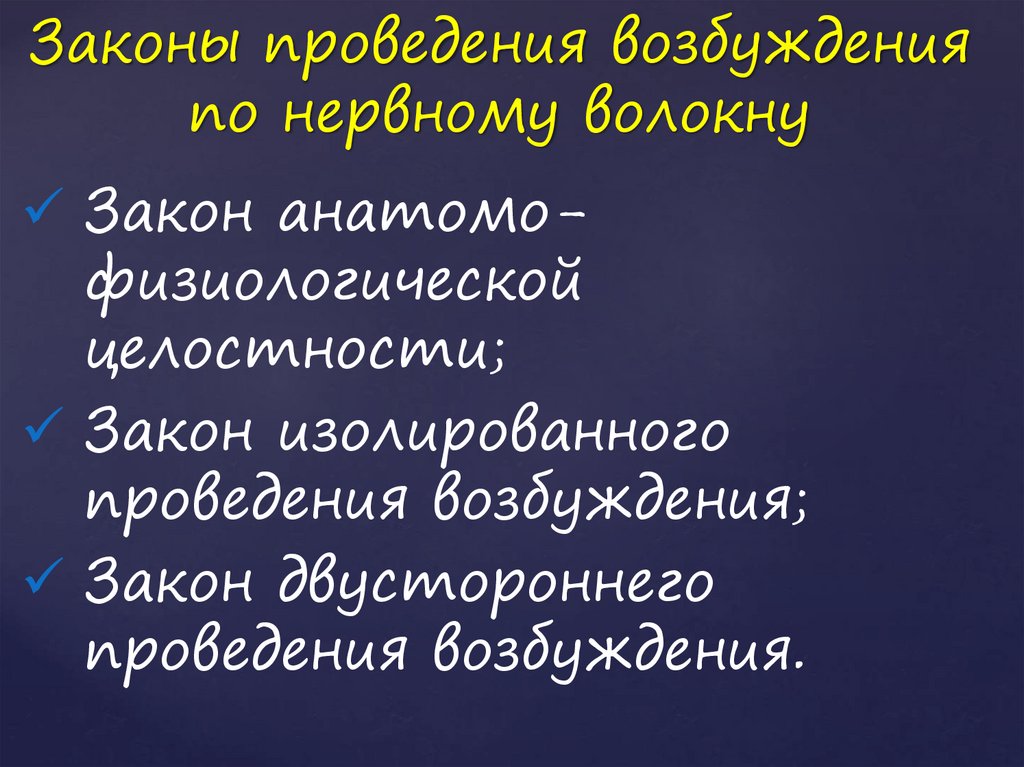 Законы проведения возбужденияпо нервному волокну