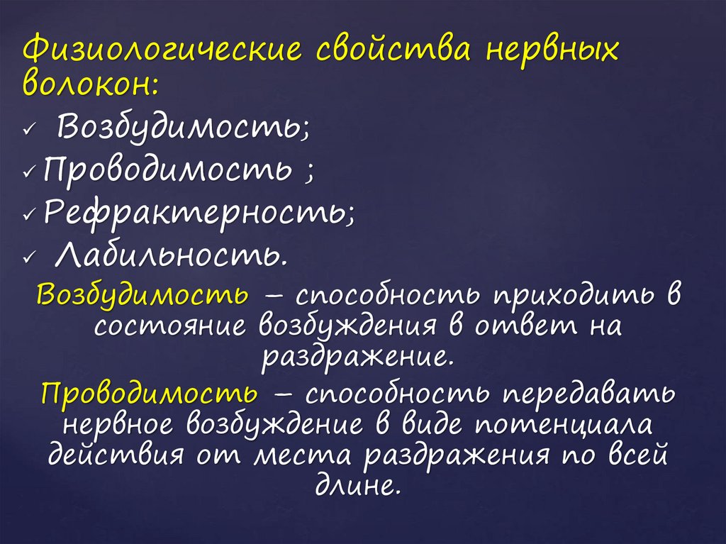 Физиологические свойства нервныхволокон: